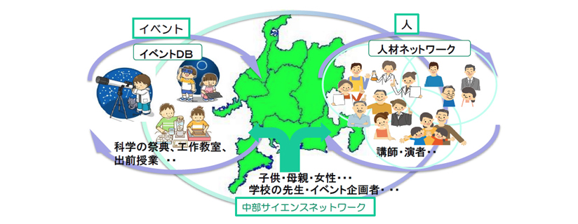 中部サイエンスネットワークでは、中部エリアの若手を対象に、科学コミュニケーションを学ぶ講座を開講し、子どもに科学を伝える大人たちの連携、強化を進めるとともに、情報交換とネットワークつくりの場を提供しています。