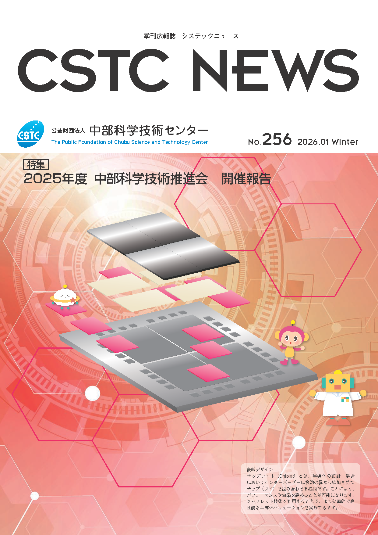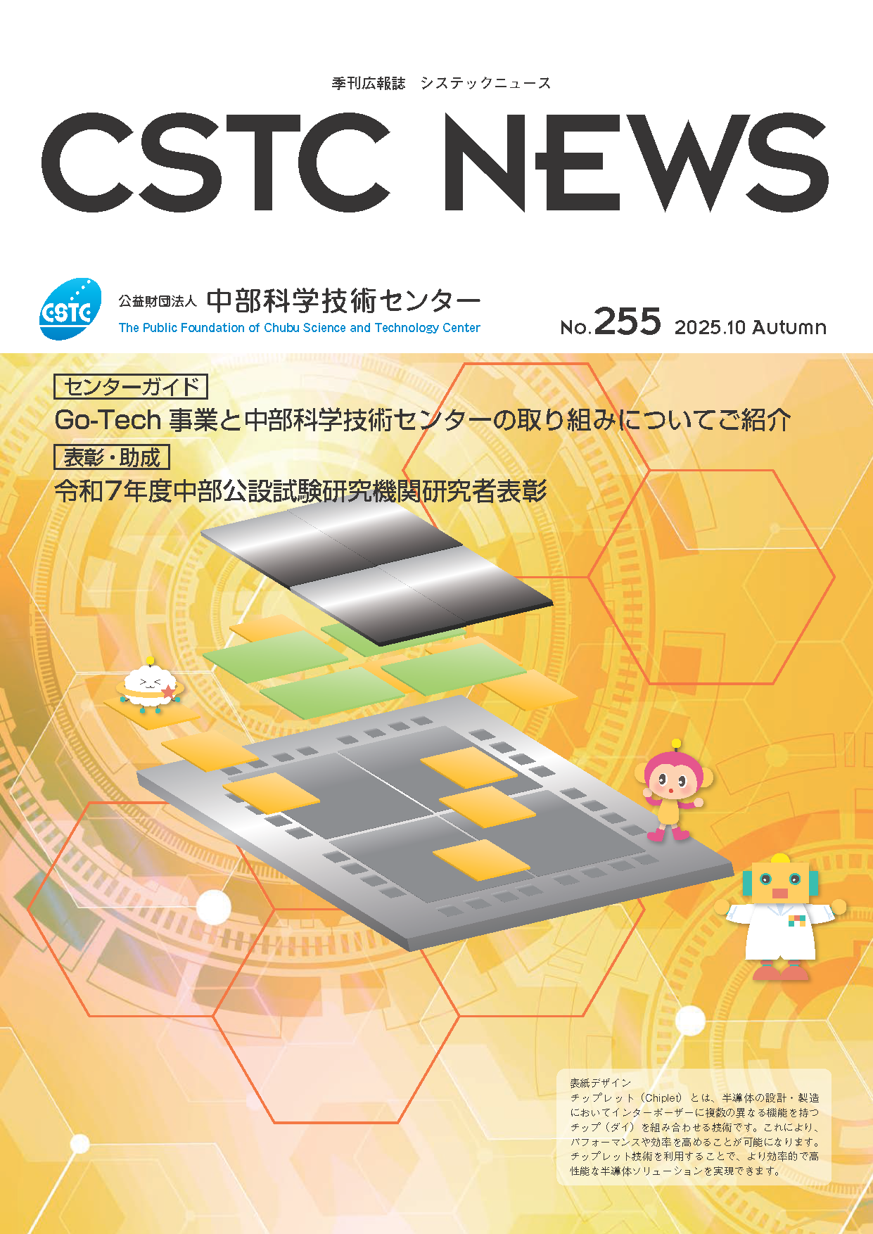 中部地域の産業発展に寄与することを目的とし、科学技術振興に資する産業および科学技術動向ならびに国際技術交流などに関する情報や、当センターの事業案内、活動報告などを広く提供しています。 また、イベントなどの参加者も募集いたします。 年4回 発行