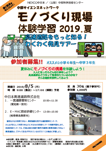 8/5 モノづくり現場体験学習2019.夏 参加者募集