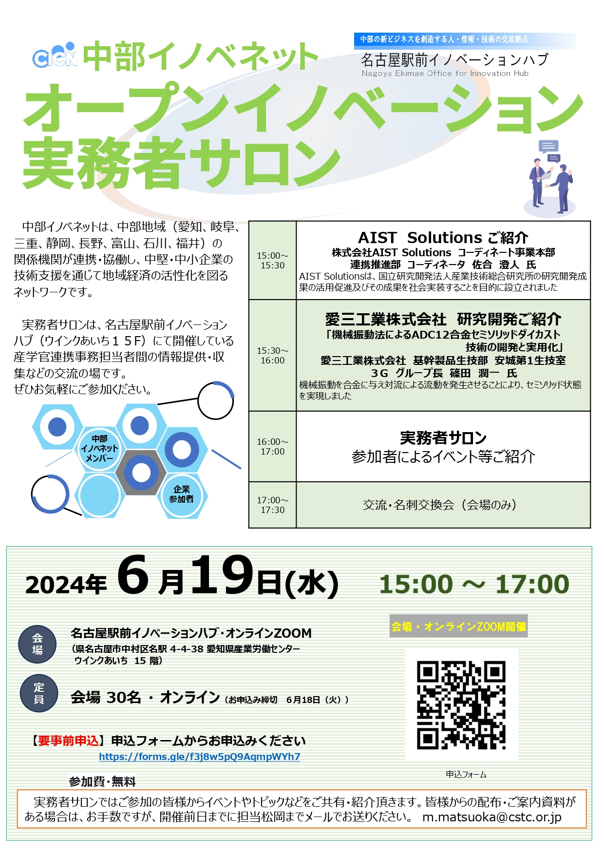 6/19 中部イノベネット オープンイノベーション実務者サロン開催のご案内
