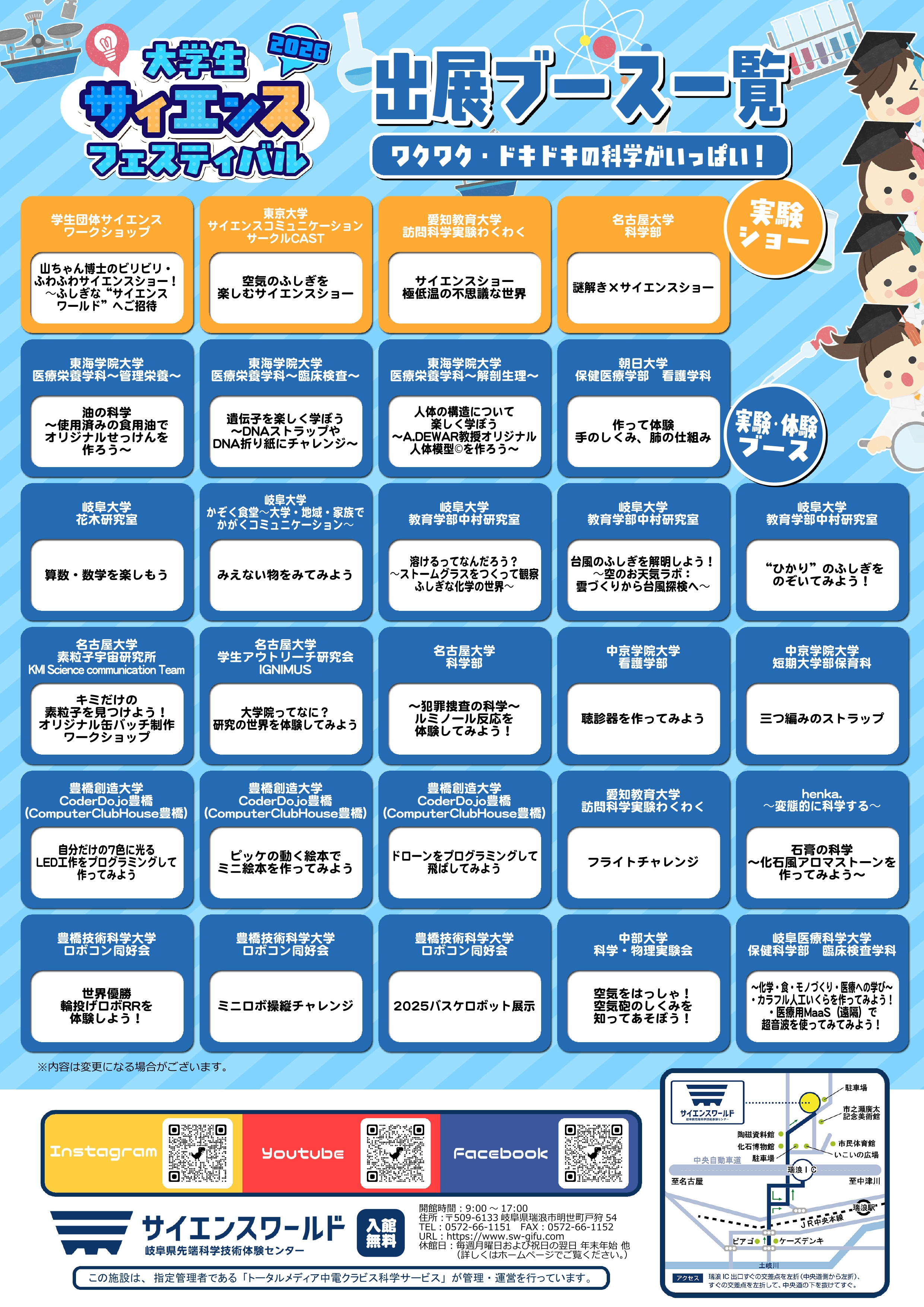会 場 岐阜県先端技術体験センターサイエンスワールド