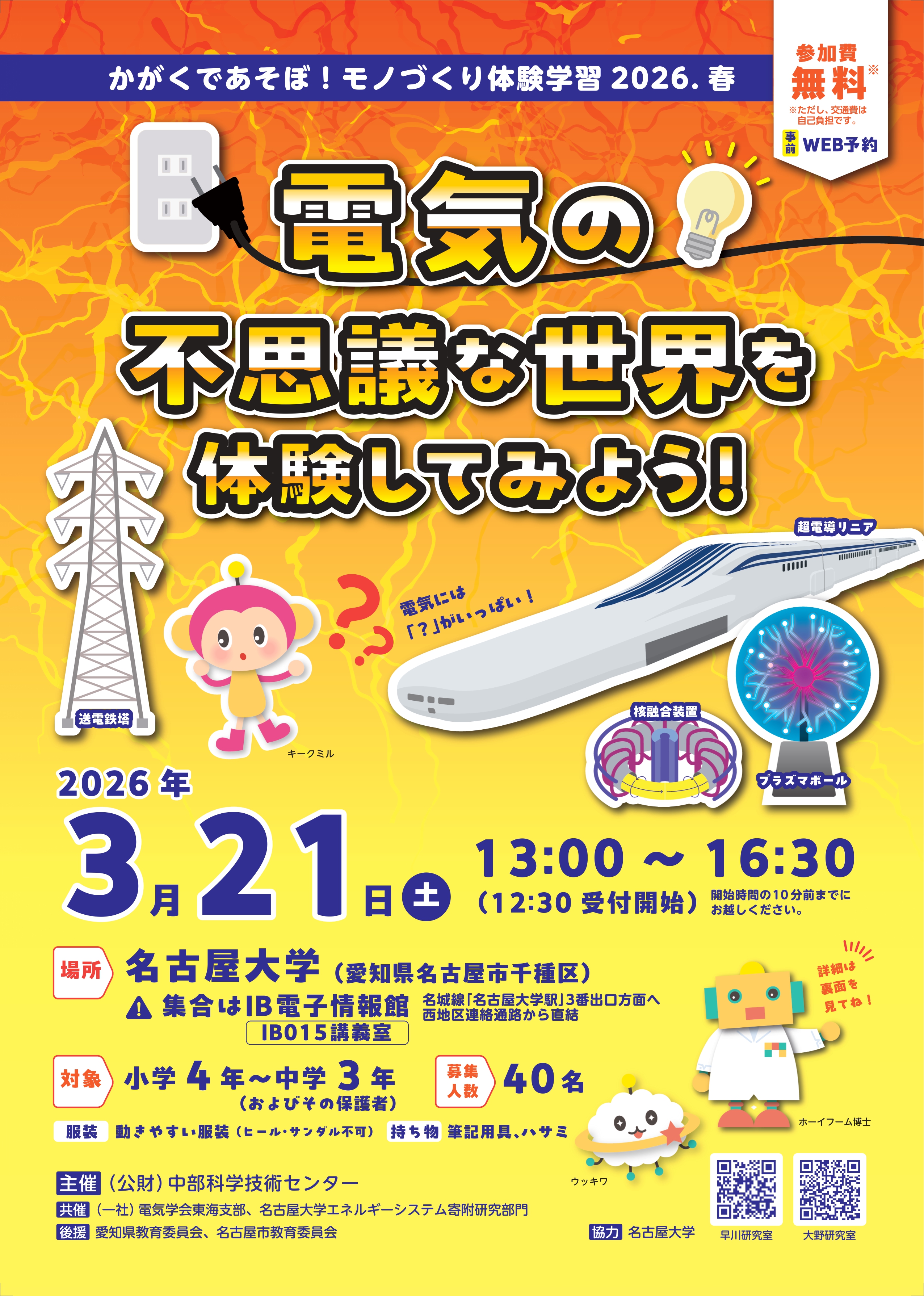 3/21 かがくであそぼ!モノづくり体験学習2026.春 電気の不思議な世界を体験してみよう! 開催案内